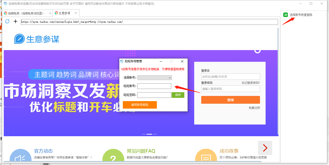 4.常用账号可以输入账号密码 然后保存一下 下次在生意参谋登录页面 可以快速选择登录账号