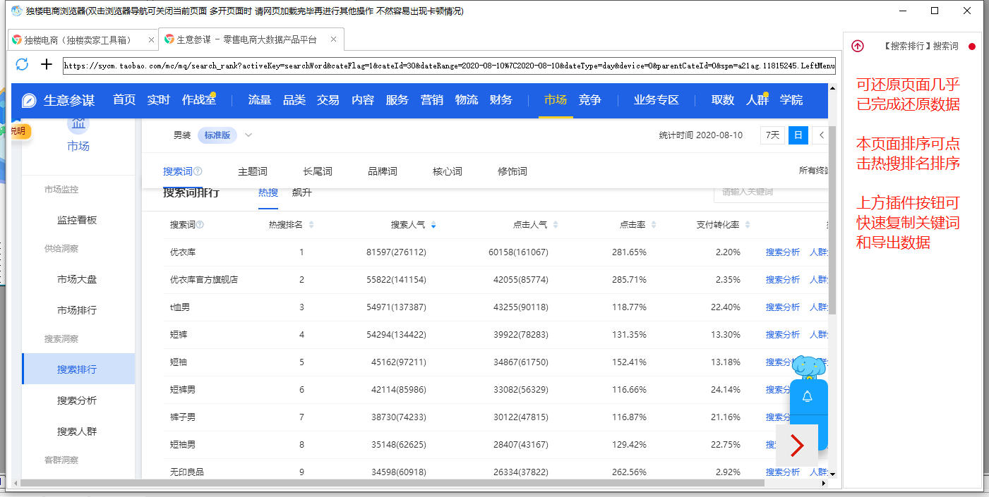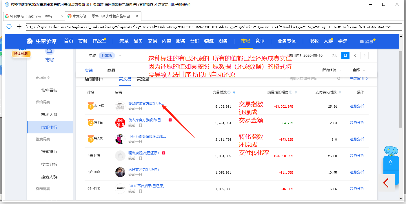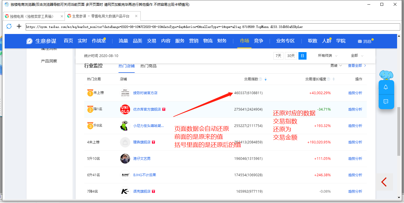 独楼电商浏览器 指数还原使用教程和疑问解答