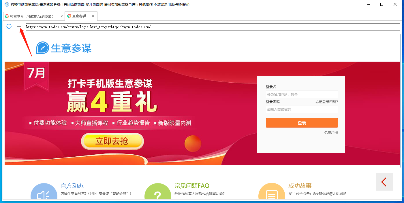 1.点击+ 新建一个生意参谋的网页